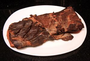The meat should marinate for 1 week before cooking, which could also be suitable for a preservative cure, however, in this recipe it is purely for the purpose of flavouring.