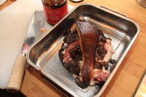 #gammon #boil #bayleaves #gammonjoint #onion #orangejuice #pickles #roast #fat #roastpotatoes #cheese