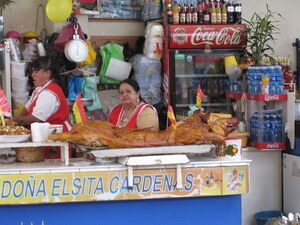 In this category you will find Ecuadorian recipes in English. Ecuadorian cuisine is diverse, varying with altitude and associated agricultural conditions. Pork, chicken, beef, and cuy (guinea pig) are popular in the mountain regions and are served with a variety of carbohydrate-rich foods, especially rice, corn and potatoes. A popular street food in mountain regions is hornado, consisting of potatoes served with roasted pig. Some examples of Ecuadorian cuisine in general include patacones, unripe plantains fried in oil, mashed up and then refried, llapingachos, a pan seared potato ball, and seco de chivo, a type of stew made from goat. A wide variety of fresh fruit is available, particularly at lower altitudes, including granadilla, passion fruit, naranjilla, several types of bananas, uvilla, taxo, and tree tomato. There are several Ecuadorian dishes that are typical to the various regions in the country. For example, costeños (people from the coast) prefer fish, beans and plantains (unripened banana like fruit), while serranos from the mountain regions prefer meat, potatoes, rice and white hominy (mote). Regional examples include ceviches from the Coast, which are prepared in many different ways but basically consist of seafood (fish, shrimp, etc) marinated in lime juice, as well as cassava (yuca) bread, plantains served with crushed peanuts or salprieta, and encebollado, a very popular dish in the Coast, that contains a marinade with large chunks of fish, onions and various regional seasonings.