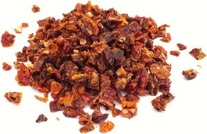 Sun-dried tomatoes are traditionally red plum ripe tomatoes that are dried in the sun to remove most of the water content from the tomatoes, during the process up to 93% of the moisture will be lost, as a result, it takes anywhere from 8 to 14 kilos of fresh tomatoes to make a single kilo of sun-dried tomatoes. These chopped sun-dried tomatoes can be used in a wide variety of recipes and require no reconstitution before use, having a soft consistency and cut to a handy 6mm square dice size they’re ideal for bread baking, savoury baking (quiches, flans, biscuits), homemade sausages/burgers, salad sprinkles/ dressings, pasta sauce, pizza toppings, instant snacks and also great blended with parmesan, pine nuts, basil and olive oil to make a red pesto.