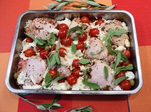 | Tomato, chicken and mozzarella traybake | |