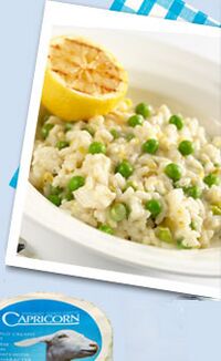 - Beetroot and bitter salad leaf risotto dressed with goats' cheese
