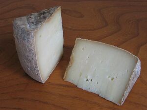 The cheese is hard and barrel-shaped and has a natural rind. It is not available all year round.