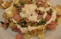Crushed new potatoes topped with shredded ham, spring onion and sour cream recipe.jpg Used on 2 pages